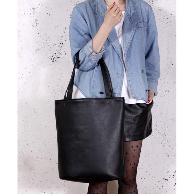 Oryginalna torebka wykonana eko-skóry w kolorze czarnym. W środku bawełniana wzorzysta podszewka, dwie kieszonki w tym jedna zapinana na zamek. Całość zapinana na zamek. Torebka mieści format A4. Wymiary: Wysokość: 40cm Szerokość : 40cm. Termin realizacji zamówienia to 5-6 dni.