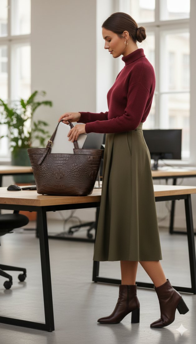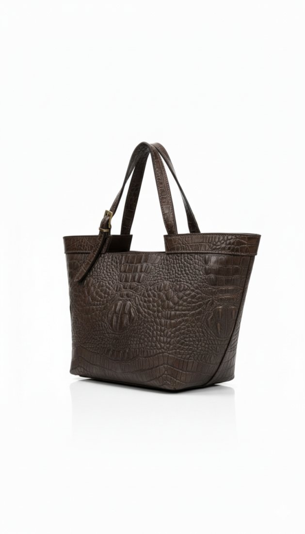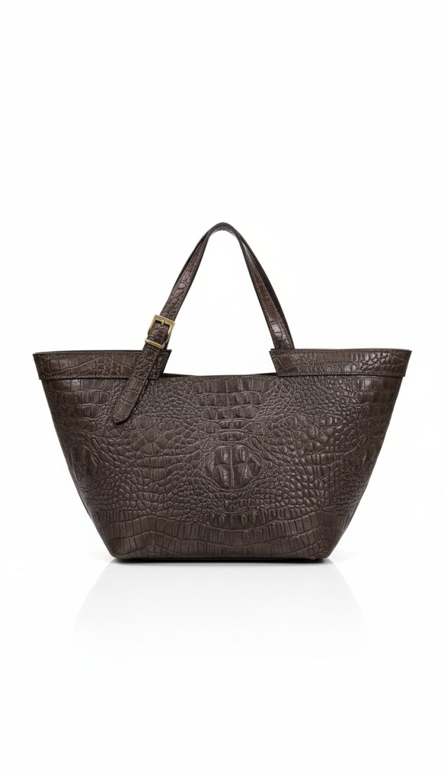 Ta luksusowa torebka typu shopper to esencja profesjonalizmu i wyrafinowanego stylu. Jest idealnym wyborem dla nowoczesnej kobiety biznesu, która ceni sobie elegancję, nie rezygnując z pojemności. Ciemny, szlachetny kolor i charakterystyczna faktura krokodyla sprawiają, że torebka doskonale pasuje do codziennych stylizacji biznesowych, dodając im prestiżowego charakteru.