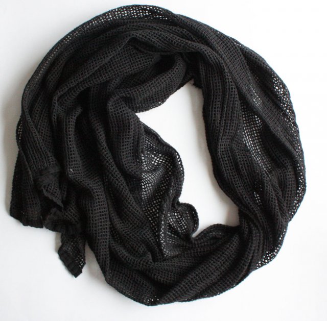 Czarny szal z grubej "siateczki". Materiał oceniam na bawełnę. Unisex.
