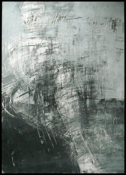 Rysunek wykonany w technice mieszanej (węgiel, tusz, ołówek,akryl), format pracy 99x96cm