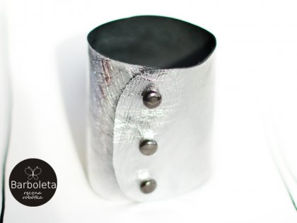 Minimalistyczna mankietowa bransoleta w kolorze srebrnym metalicznym z wysokiej jakości skóry naturalnej.