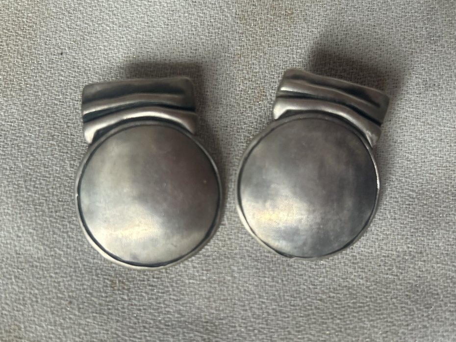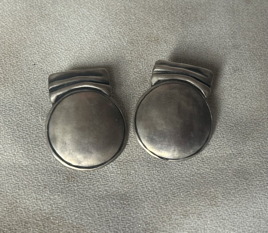 Duże srebrne unikatowe - greckie artystyczne kolczyki ręcznie wykonane , kupione w Galerii na Santorini . Srebro oksydowane . Punca 925 , oznaczenia autora i 28.62 . ( tego samego autora jest wystawiona osobno brosza ) Prawie 3 x 3,5 cm Stan zachowania bardzo dobry - drobne ślady użytkowania . Uwaga !!! Nie czyszczę srebra i platerów specjalnie do sprzedaży.
