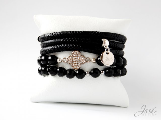 * onyks 8mm + przekładka z cyrkoniami.Na gumce.