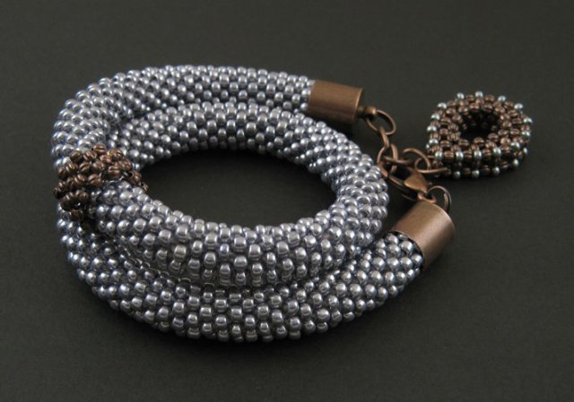 Bransoletka wykonana na szydełku ze szklanych czeskich koralików oraz materiałów metalowych, dwukrotnie owijana, polecam na nadgarstek o obwodzie 15 - 16 cm.