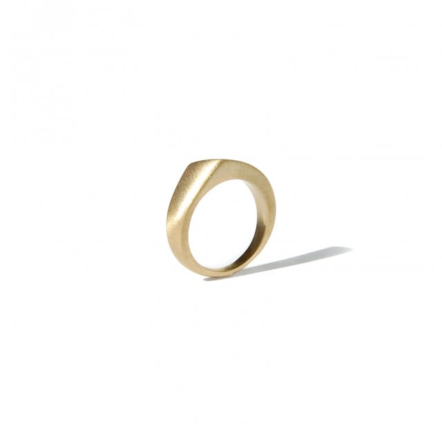 Delikatny pierścionek wykonany z matowionego mosiądzu. Powierzchnia jest satynowa - charakterystycznie podrapana.