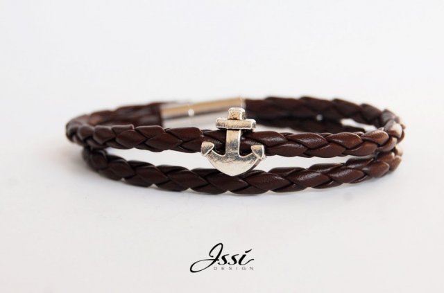 Bransoletka męska, dwukrotnie owijana wokół nadgarstka,wykonana z plecionego rzemienia skórzanego w kolorze brązowym i elementów ze stali chirurgicznej. Zapięcie magnetyczne.Długośc 36cm. Mozliwość wykonania dowolnego rozmiaru.
