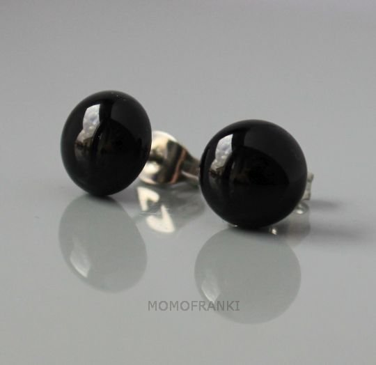 Proste, czarne, szklane kolczyki. Własnego wypału, wykonane metodą fusingu.