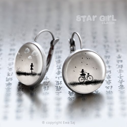 Oryginalne, romantyczne kolczyki z Miniaturkami moich grafik. Miniatury ukryte pod szklaną kopułą organicznego szkiełka. Kolor bigla antycznesrebro. Długość kolczyków 2,3 cm średnica fotografii 16 mm. Projekt autorski, wszystkie prawa zastrzeżone. Zrób sobie prezent.