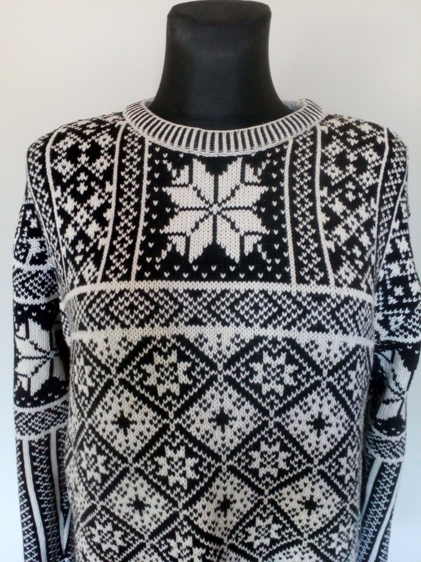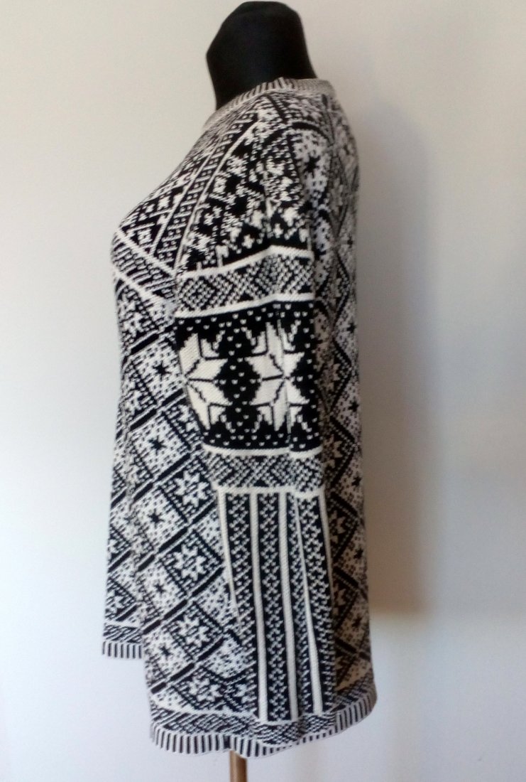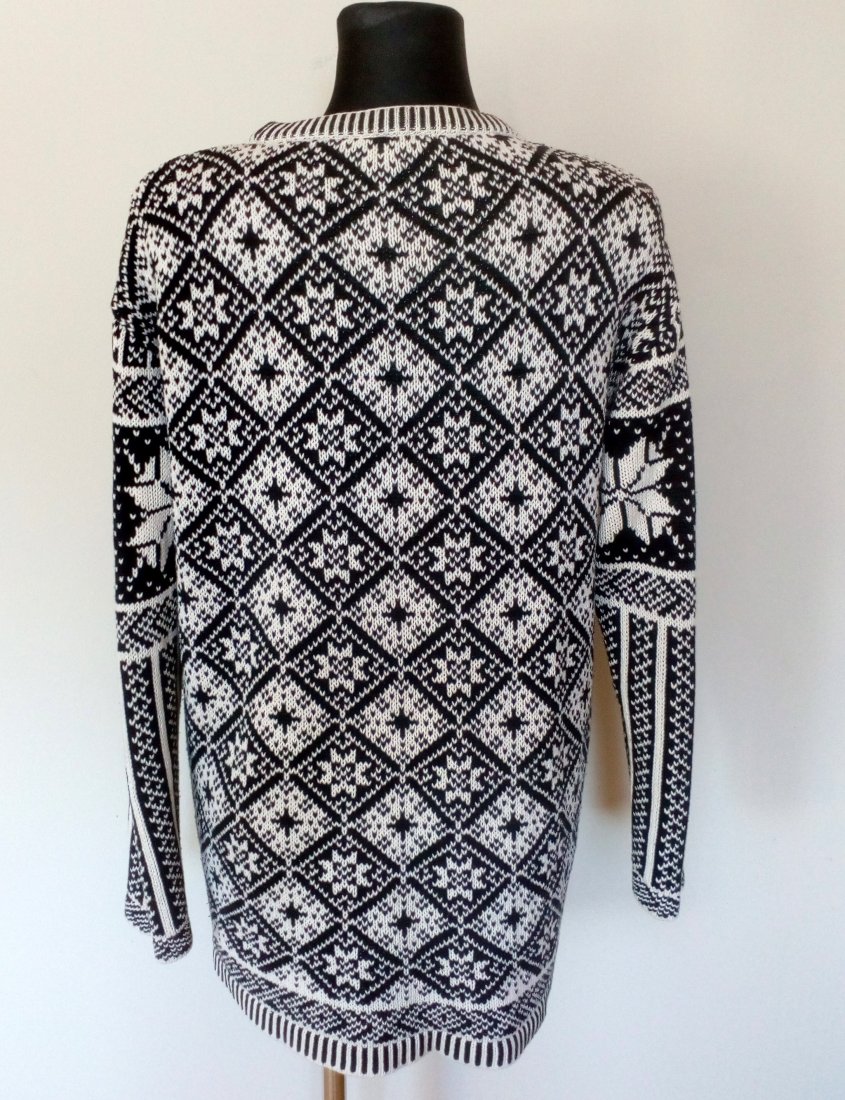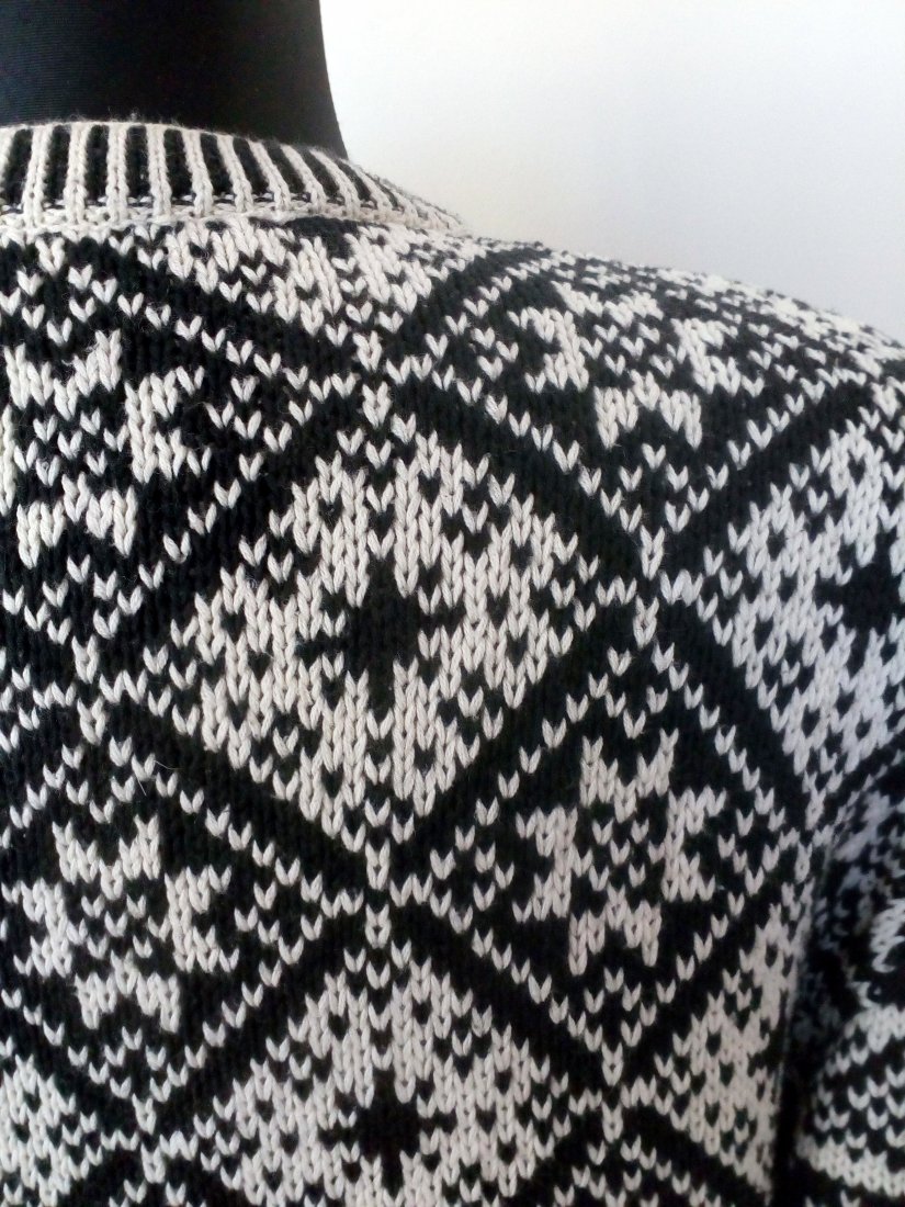 Biało-czarny, bawełniany sweter z wzorami