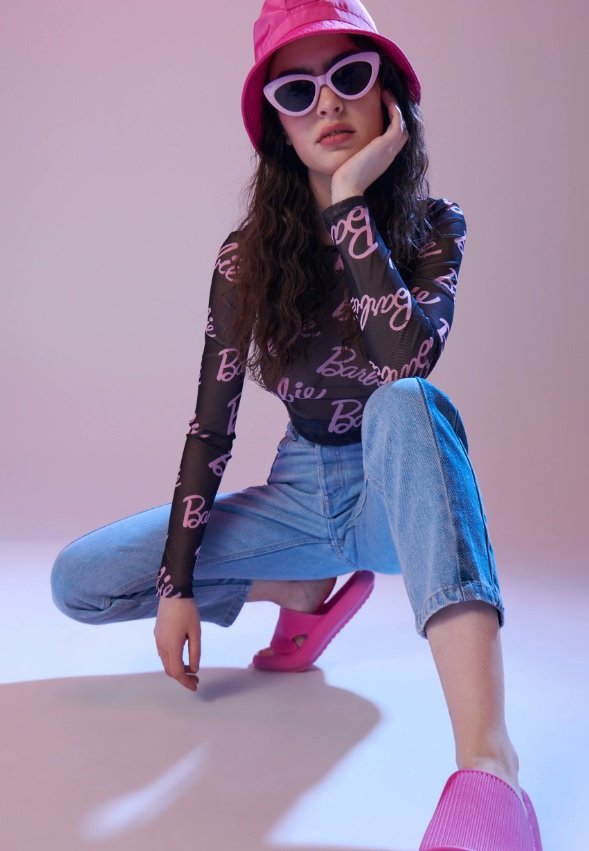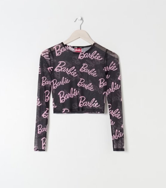 Siateczkowy top z logo Barbie. Nowy, z metką.