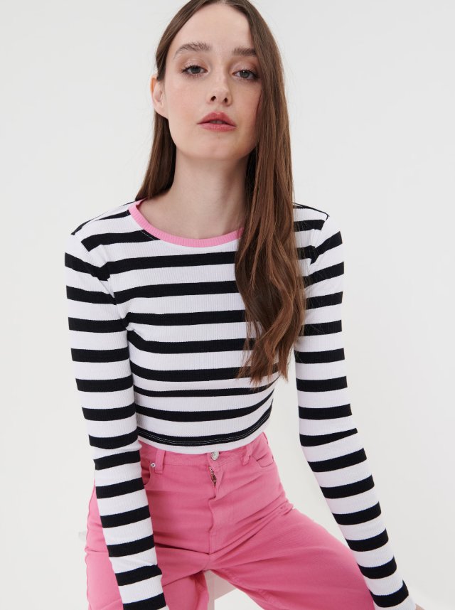 Krótka bluzka w paski, nowa, z metką.