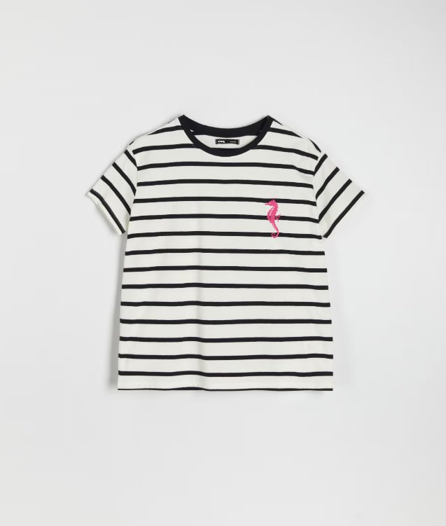 Koszulka w paski z haftowanym konikiem morskim. Nowa, z metką.