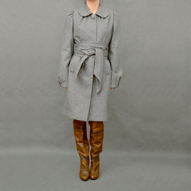 Przepiękny płaszcz ekskluzywnej marki SISLEY. Szary z kołnierzykiem w stylu retro, zapinany na guziki. Po bokach kieszenie. Dodatkowo do płaszcza jest długa szarfa do oplecenia talii. Ponieważ nie ma szlufek, można go nosić również bez paska. W obu przypadkach wygląda ślicznie. Płaszczyk w stanie nienaruszonym. Polecam.