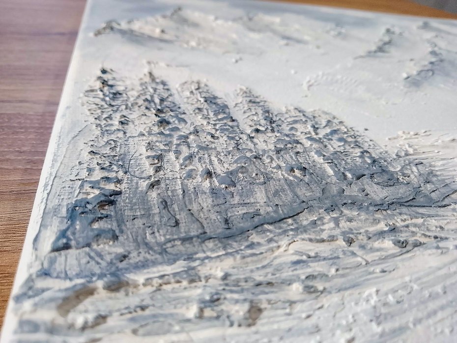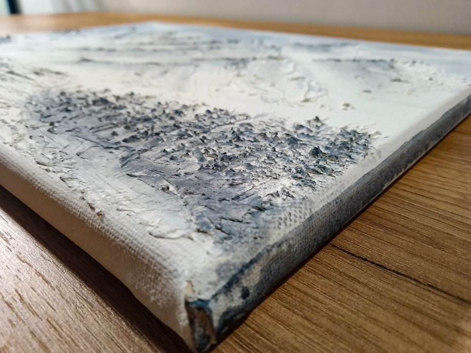 -Technika malarska: Malarstwo strukturalne z teksturą 3D z zastosowaniem pasty strukturalnej oraz farb akrylowych