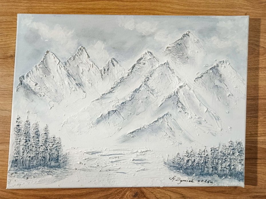 Dopełnij swoje wnętrze nutą luksusu - unikatowy, ręcznie malowany obraz z monumentalnym, zimowym krajobrazem górskim. Przenosi surowe piękno natury prosto do wnętrza, nadając mu spokojny, a zarazem silny charakter. Obraz strukturalny (impasto) charakteryzuje trójwymiarowy efekt gór i sprawia, że dzieło "żyje". Obraz pracuje ze światłem, rzucając delikatne cienie oraz tworząc niesamowite poczucie głębi.