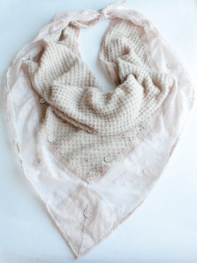 Fantazyjna, dwustronna chusta skadynawskiej marki Saint Tropez. Odcień to chłodny pudrowy róż wpadający w beż. Materiał to akryl przypominający moher. Chustę można nosić i układać na wiele sposobów.