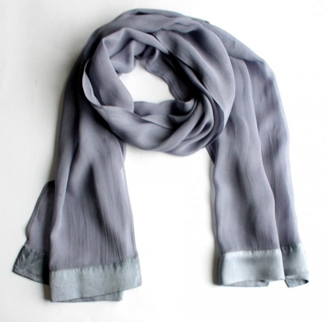 Zwiewny szal w ciekawym odcieniu marengo (szarości z kroplą błękitu). Szal skandynawskiej marki The Masai.