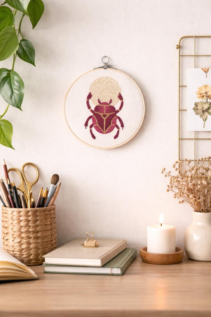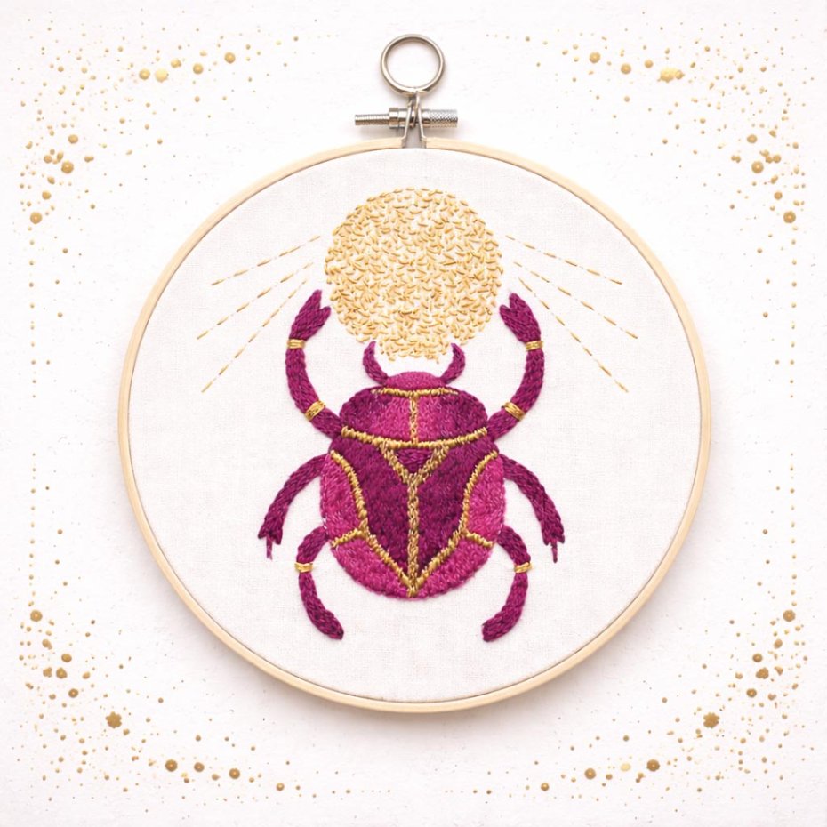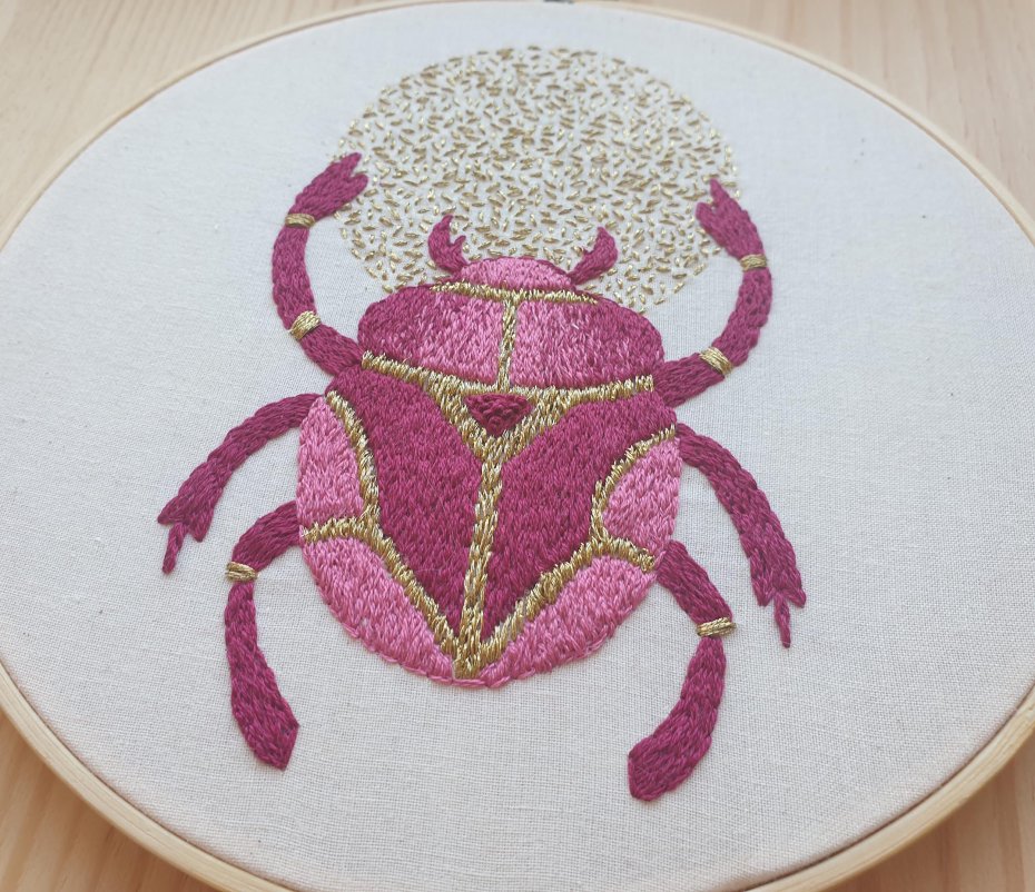 Skarabeusz w tamborku - symbol transformacji i nowego początku