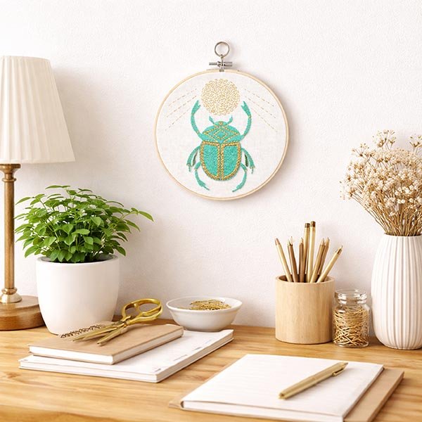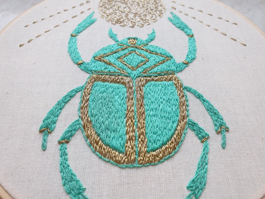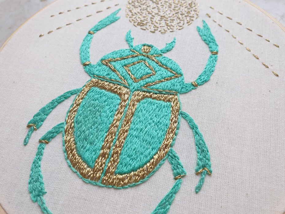 Skarabeusz w tamborku - symbol transformacji i nowego początku