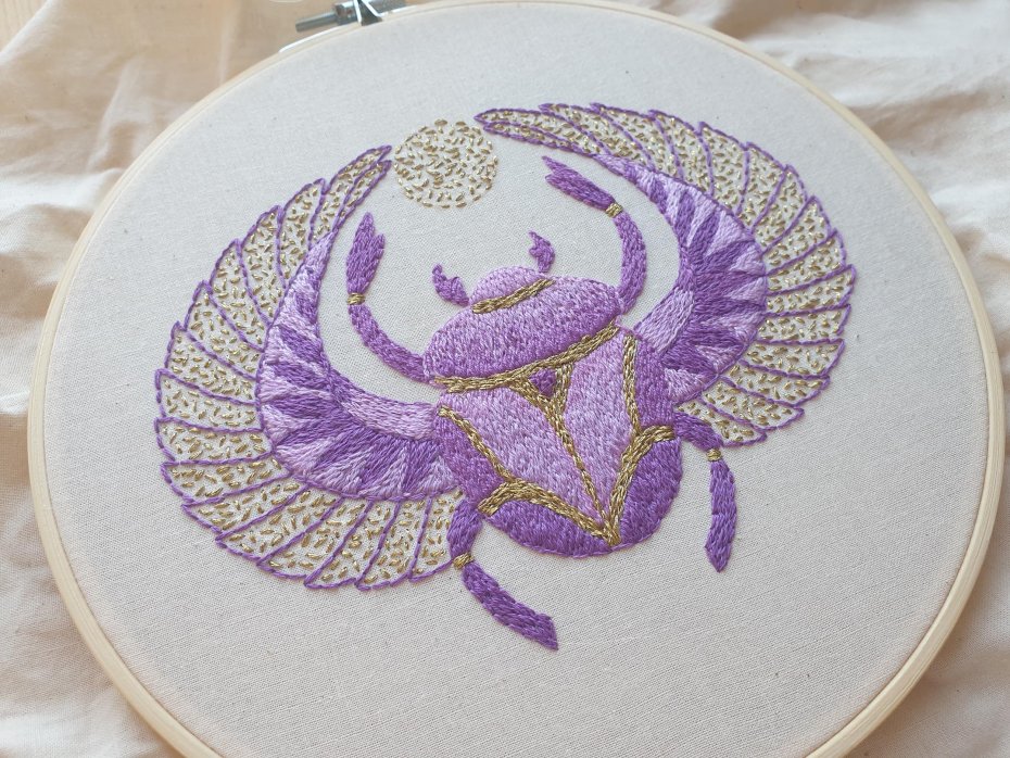 Skarabeusz w tamborku - symbol transformacji i nowego początku