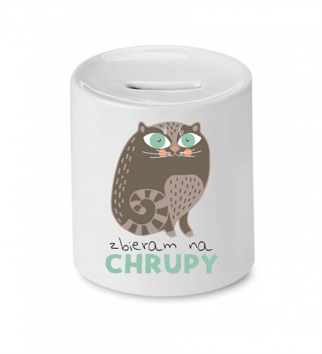 Skarbonka biała, ceramiczna z grafiką na powierzchni widocznej na zdjęciach (przy niektórych wzorach tył i przód skarbonki mogą różnić się od siebie). Skarbonka jest biała z połyskiem. Kolory mogą odrobinę różnić się od tych na zdjęciach. Dostępne różne wzory. Istnieje możliwość zamówienia skarbonki z wymarzoną grafiką, napisami itd. Skarbonki wysyłane są tylko i wyłącznie za pośrednictwem firmy kurierskiej ze względu na ich bezpieczeństwo. Grafika prezentowana na skarbonkach w wielu przypadkach może być nadrukowana również na poszewkach, torbach i innych produktach. Pojemność: 330 ml, wysokość: 95 mm, średnica: 82 mm. Na spodzie skarbonki znajduje się otwór, zamykany na plastikowe zamknięcie, umożliwiający opróżnianie skarbonki. Napisz nam na co zbierasz, a my zaprojektujemy Ci wymarzoną skarbonkę!