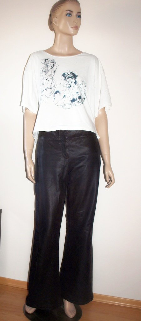 Świetne spodnie z brązowej miękkiej skóry naturalnej, fason z nogawką lekko rozszerzającą się. Kieszenie do wewnątrz. Marka niemiecka Anette Gortz. Stan skóry bardzo dobry. Pod spodem podszewka. Rozmiar z metki 42. Podaję wymiary mierzone na płasko;