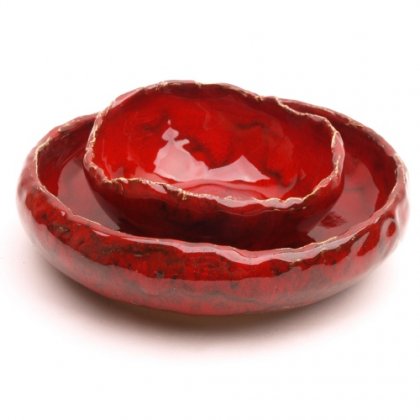 dwie miseczki - naczynka idealne na owoce, orzeszki, cukierki lub inne łakocie. przybliżone wymiary: średnica- 21 i 14cm, wys-ok.6cm. polecam serdecznie