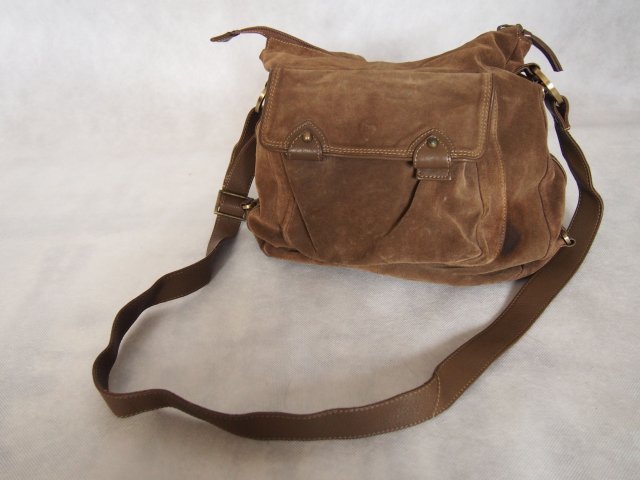 Skórzana torba firmy Next na długim regulowanym pasku. Na zewnątrz skóra naturalna, w środku podszewka imitująca skórę z poliestru, także brązowa. W środku torebki jedna kieszonka zamykana na zamek, na zewnątrz kieszonka na zatrzask.
