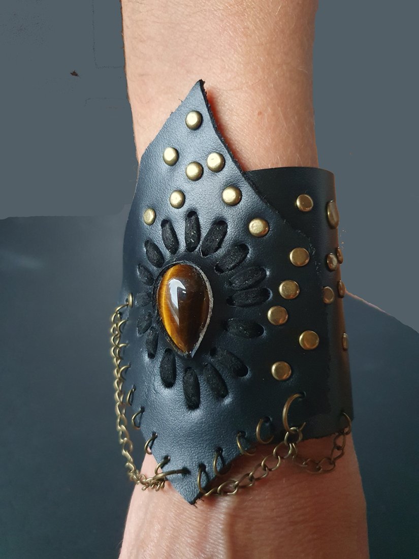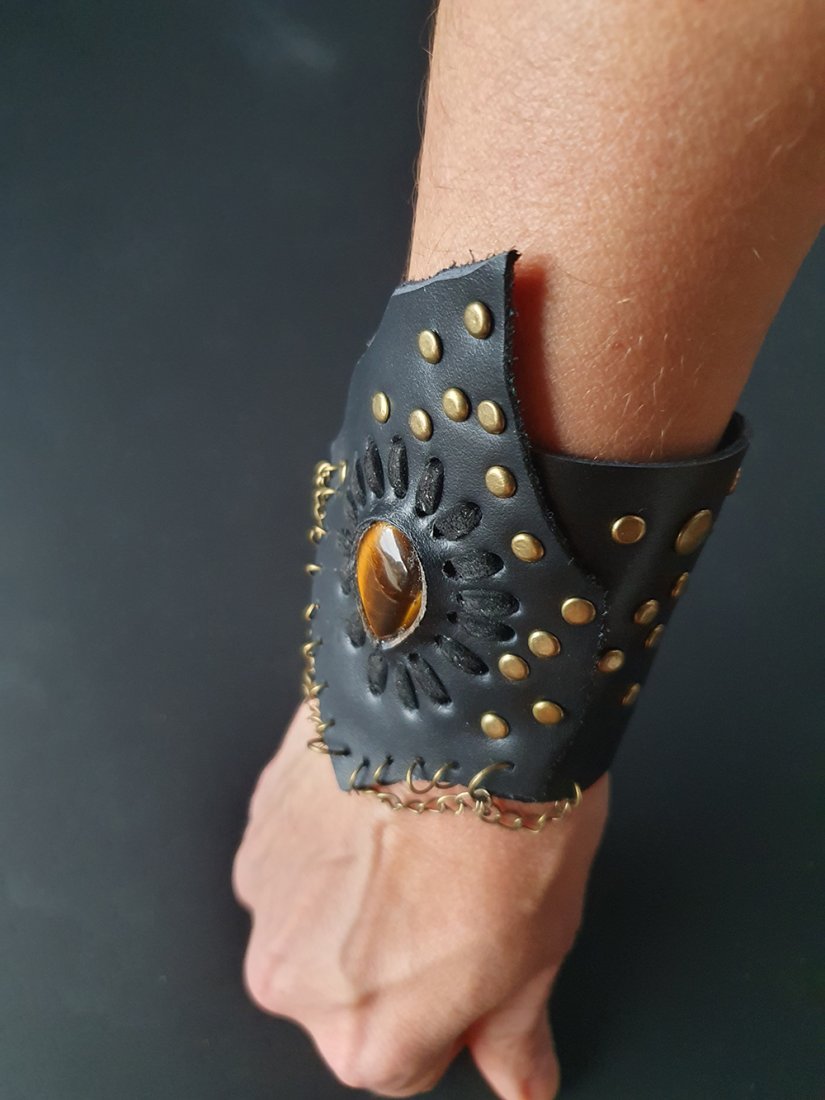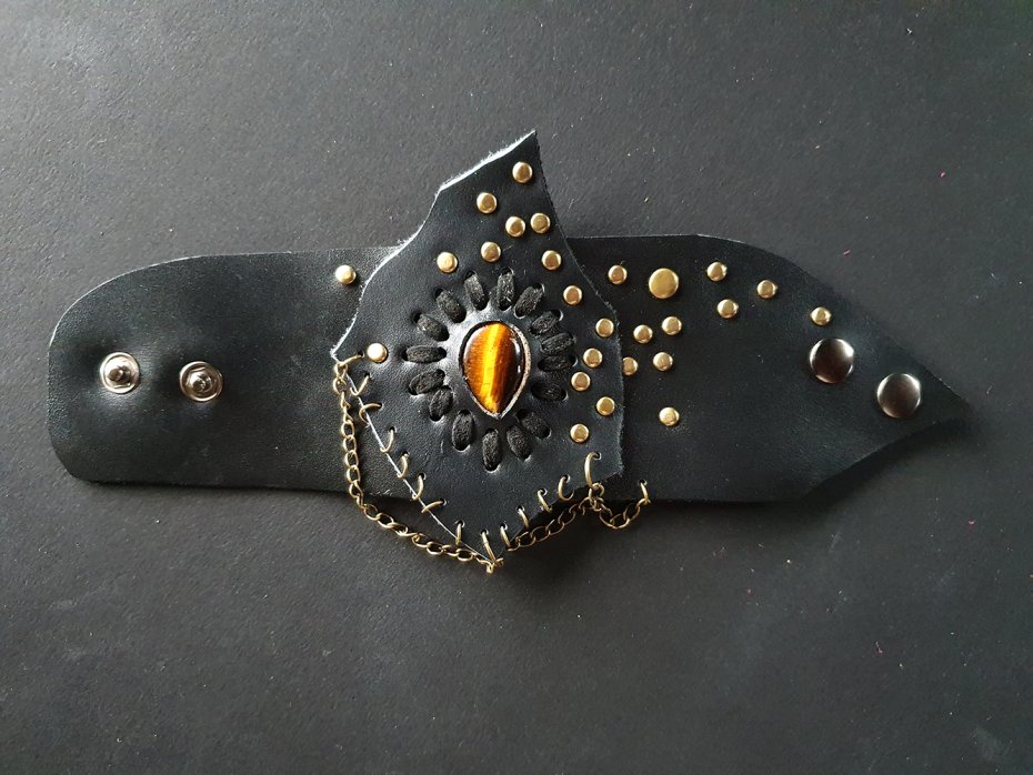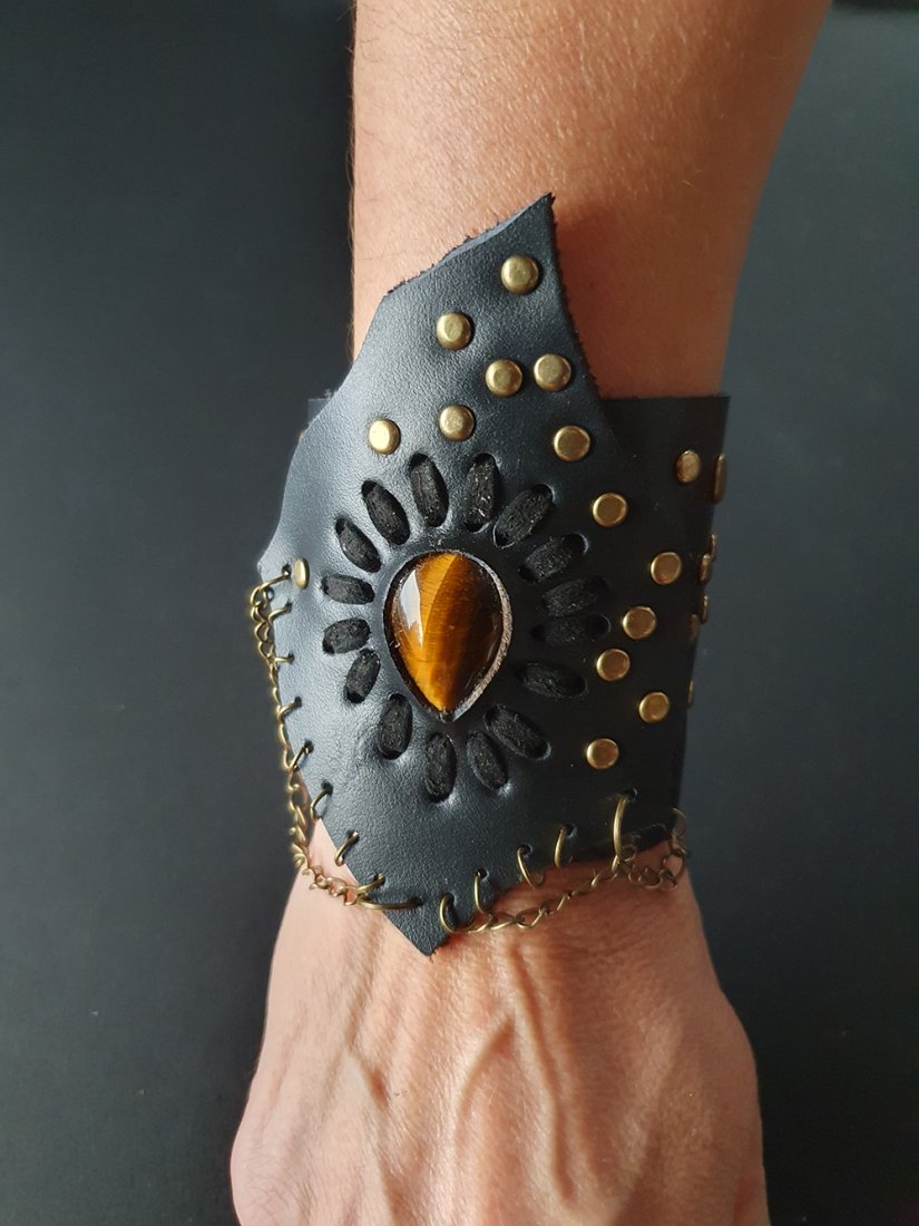 Tagi: #biżuteria skórzana, #skórzana bransoleta, #szeroka bransoleta, #tygrysie oko