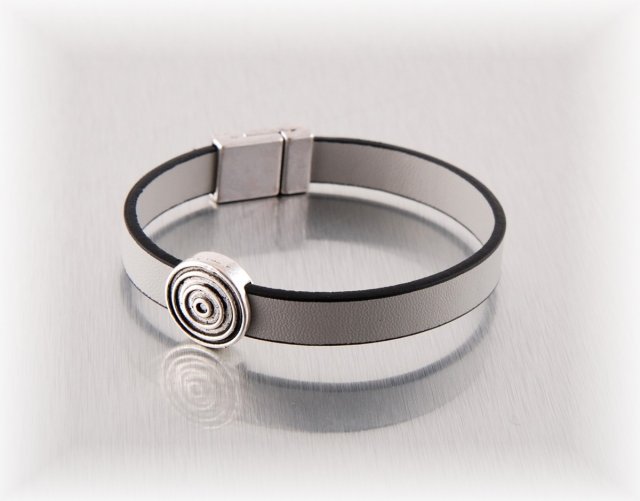Prosta, minimalistyczna bransoletka ze skóry naturalnej. Jest ozdobiona okrągłym elementem.