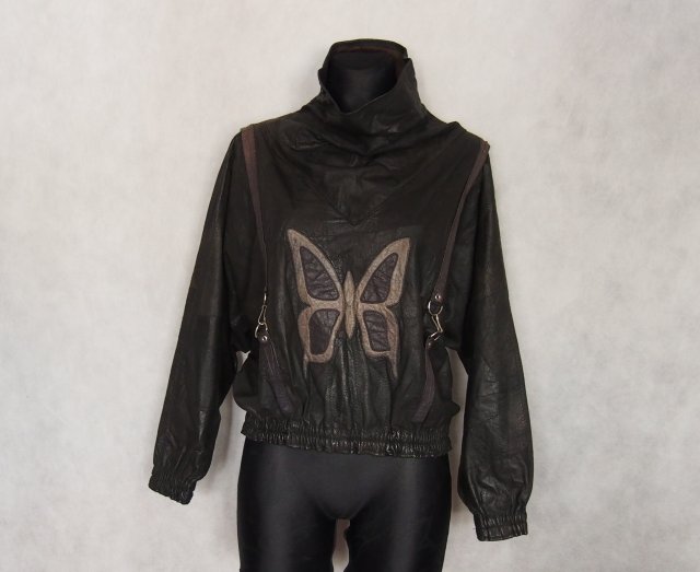 Skórzana designerska kurtka vintage. Wkładana przez głowę, krój nietoperz.