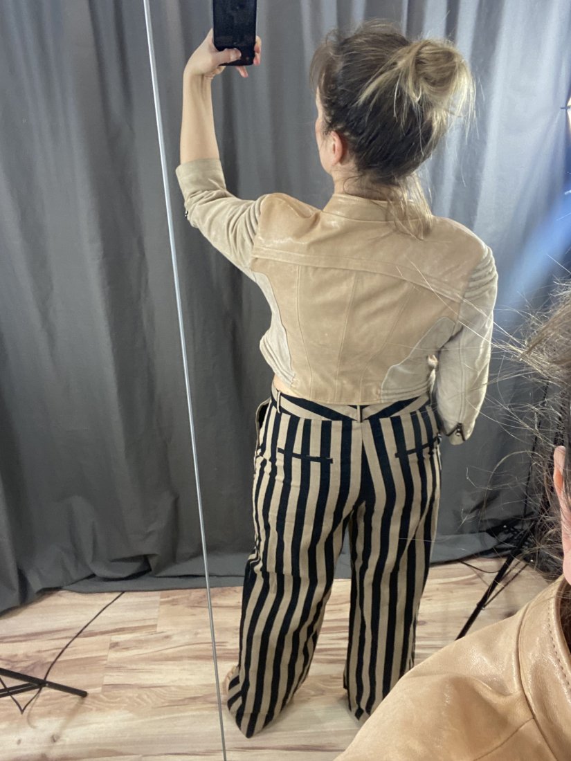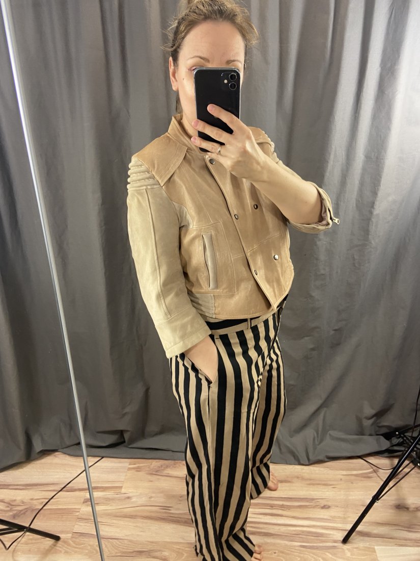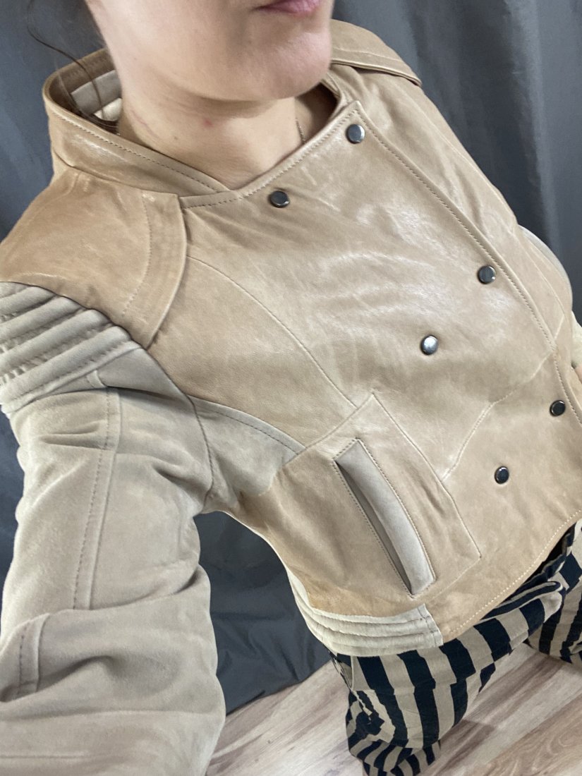 Kurteczka ze skóry naturalnej. Dwa rodzaje skóry, rękawy i wszycia z zamszu, reszta z mięciutkiej skóry.