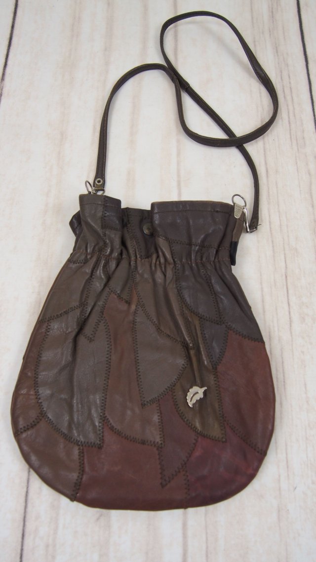 Boski patchworkowy worek skórzany. Vintage. Zapinany na zatrzask.