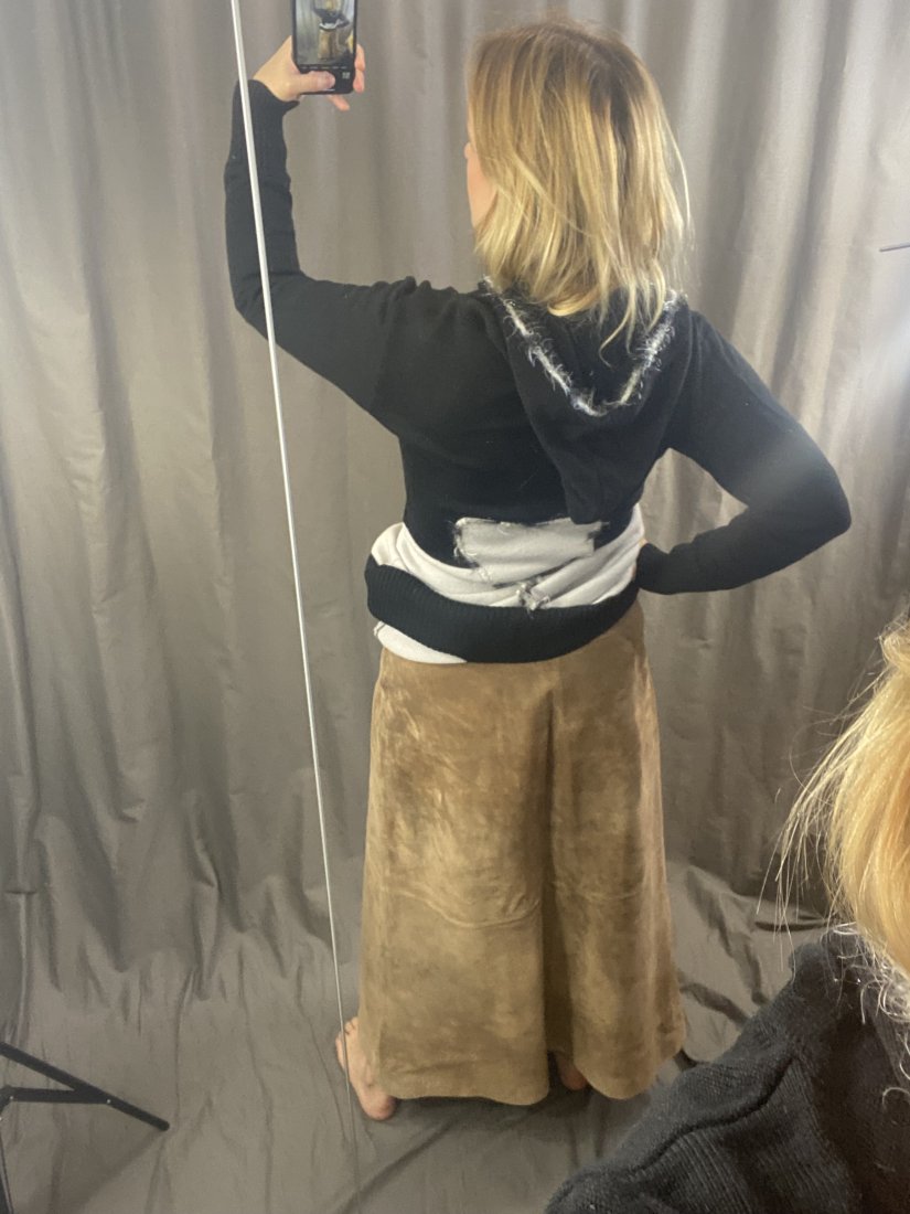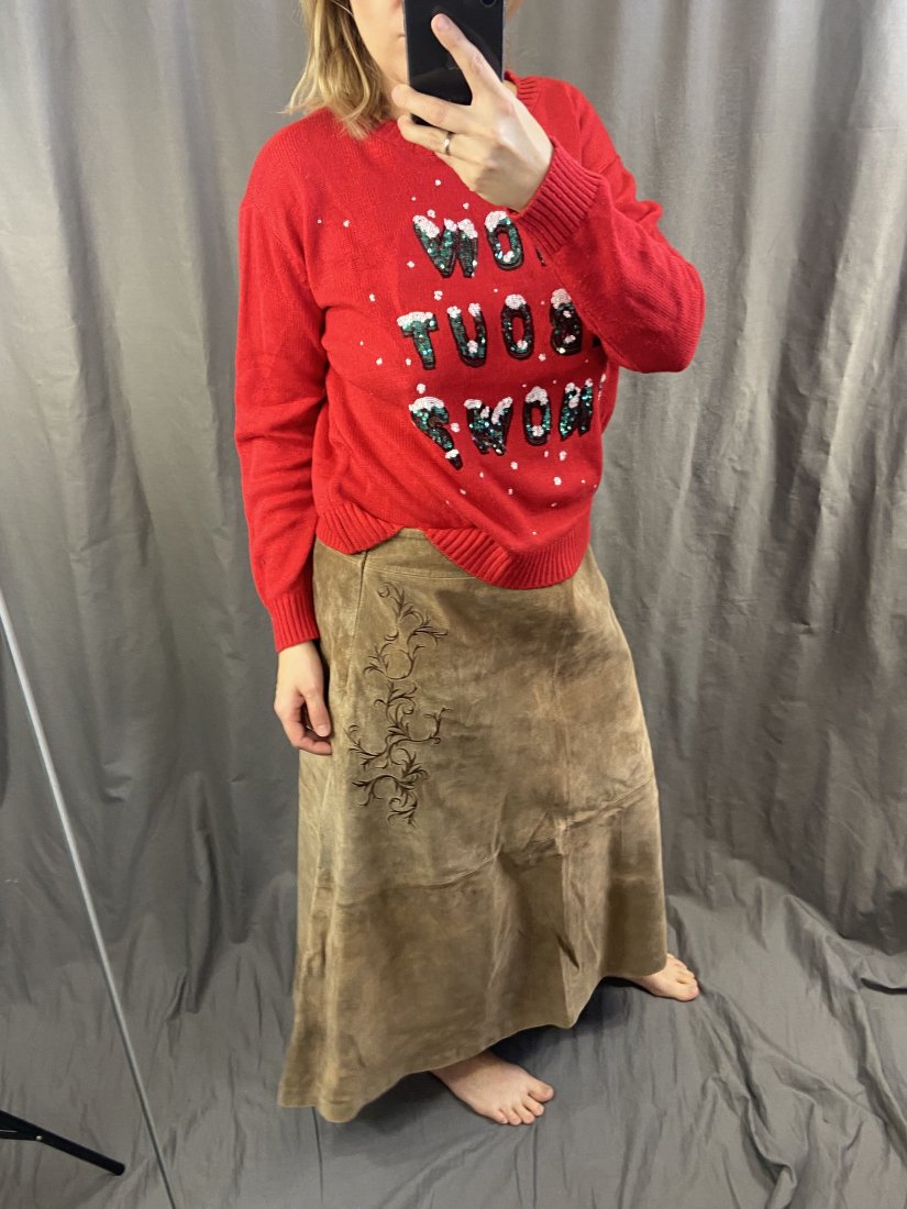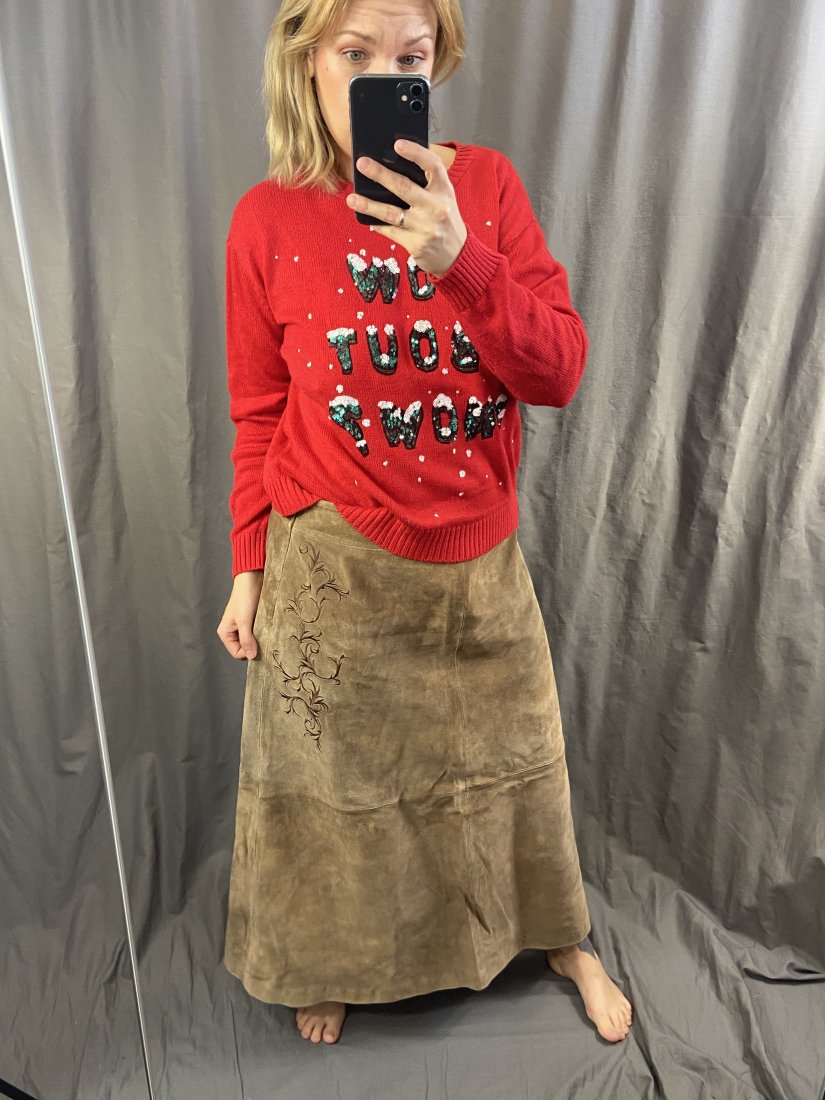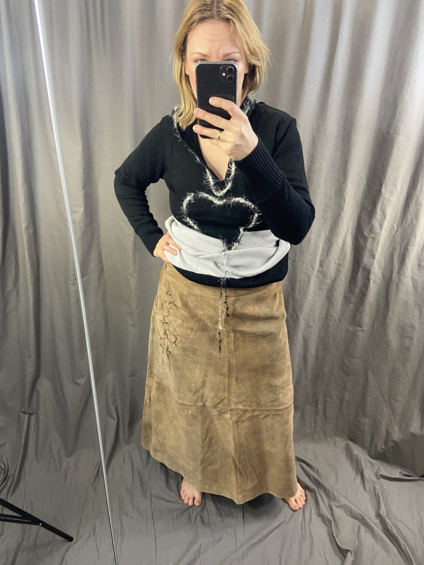 Spódnica skórzana na podszewce. Z haftem. Marki Estelle.