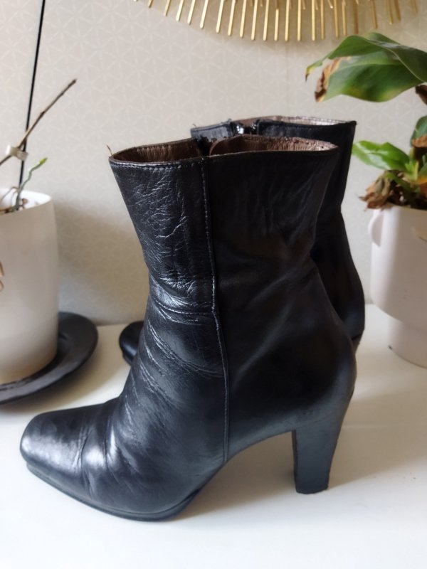 Skórzane botki z miękkiej naturalnej skóry licowej w czarnym kolorze. Zapinane na zamek