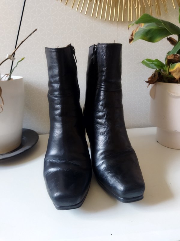 Skórzane botki z miękkiej naturalnej skóry licowej w czarnym kolorze. Zapinane na zamek