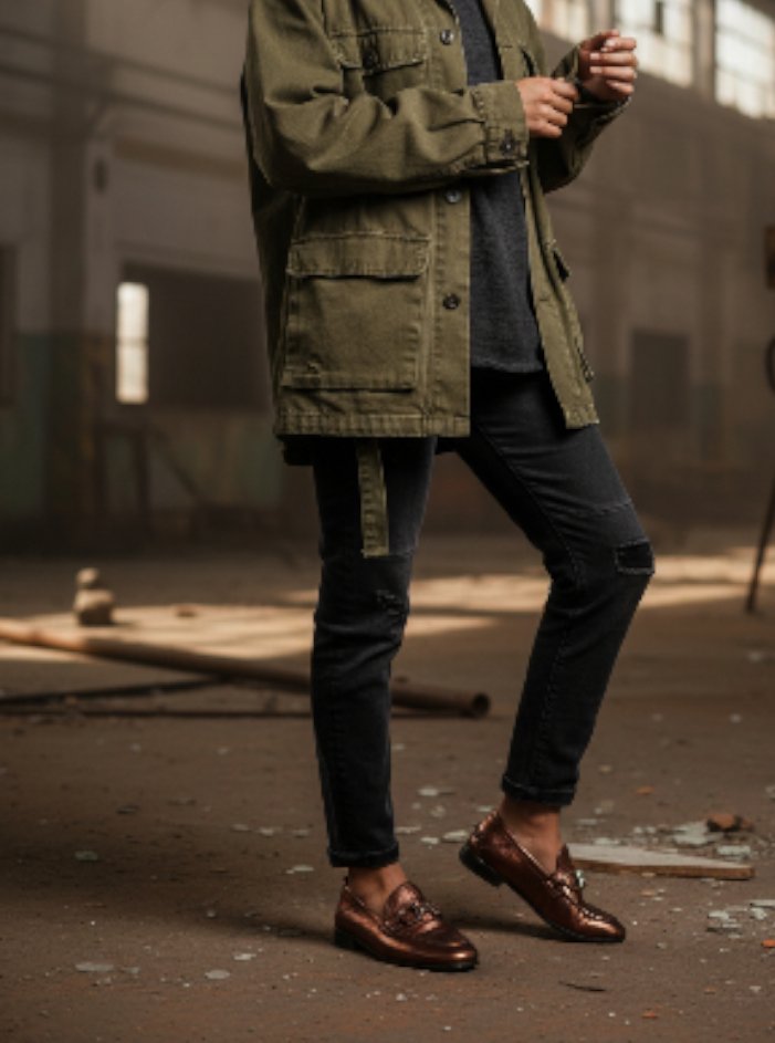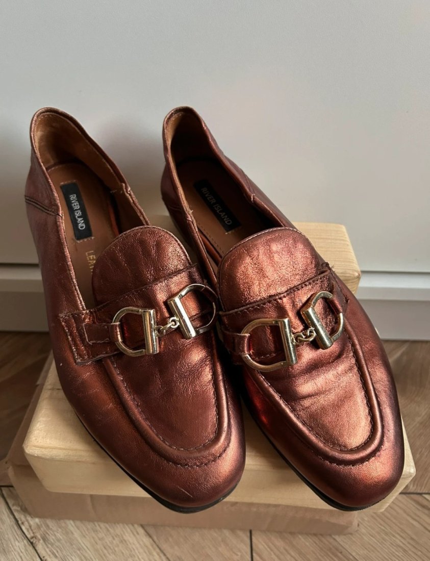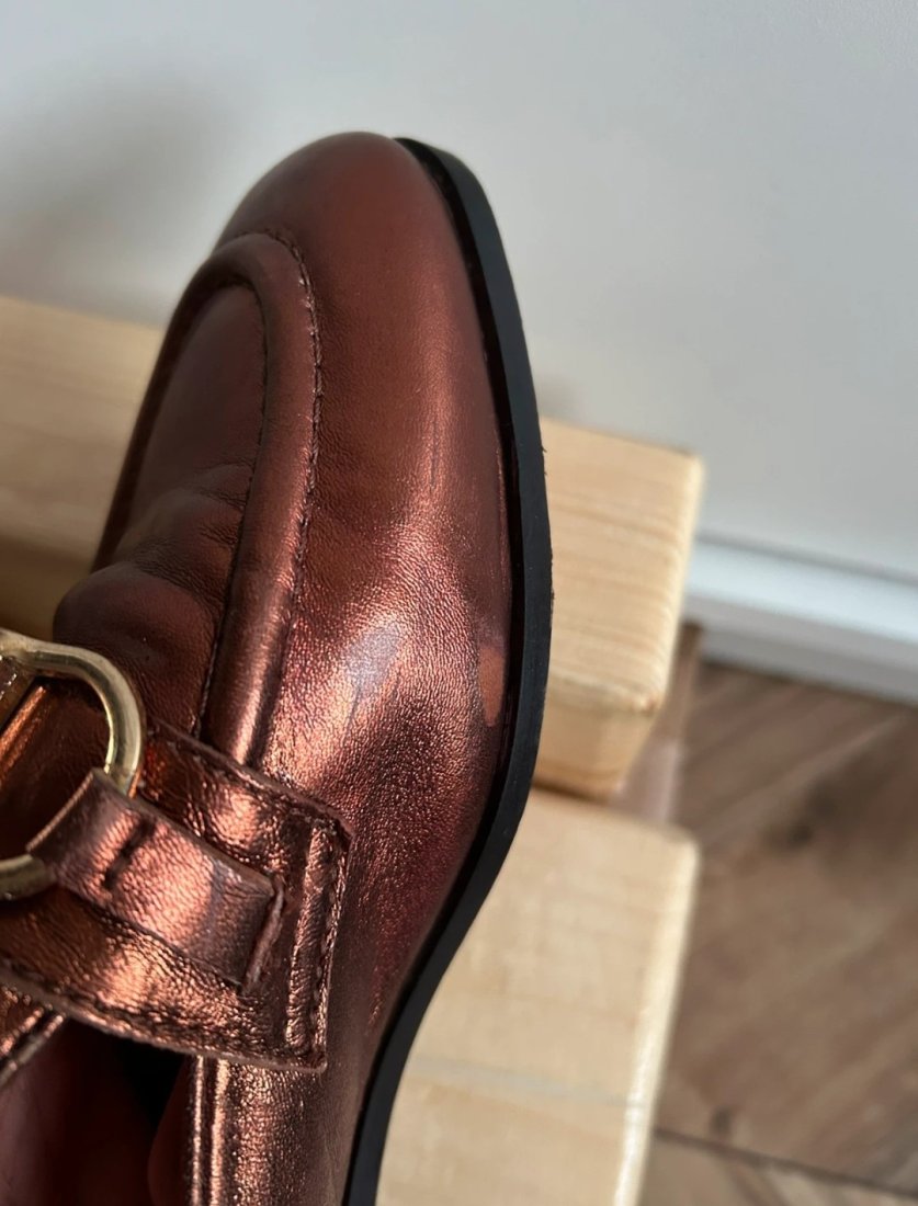Mokasyny miedziane z metalowymi elementami ozdobnymi