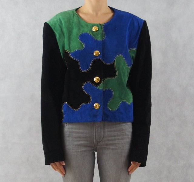 Kultowy krój i wzór. Designerska krótka kurtka/marynarka skórzana niemieckiej marki Yessica. Z lat 80tych.