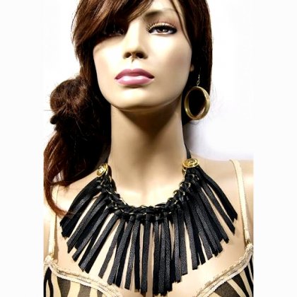 Naszyjnik wykonany z naturalnej czarnej skóry