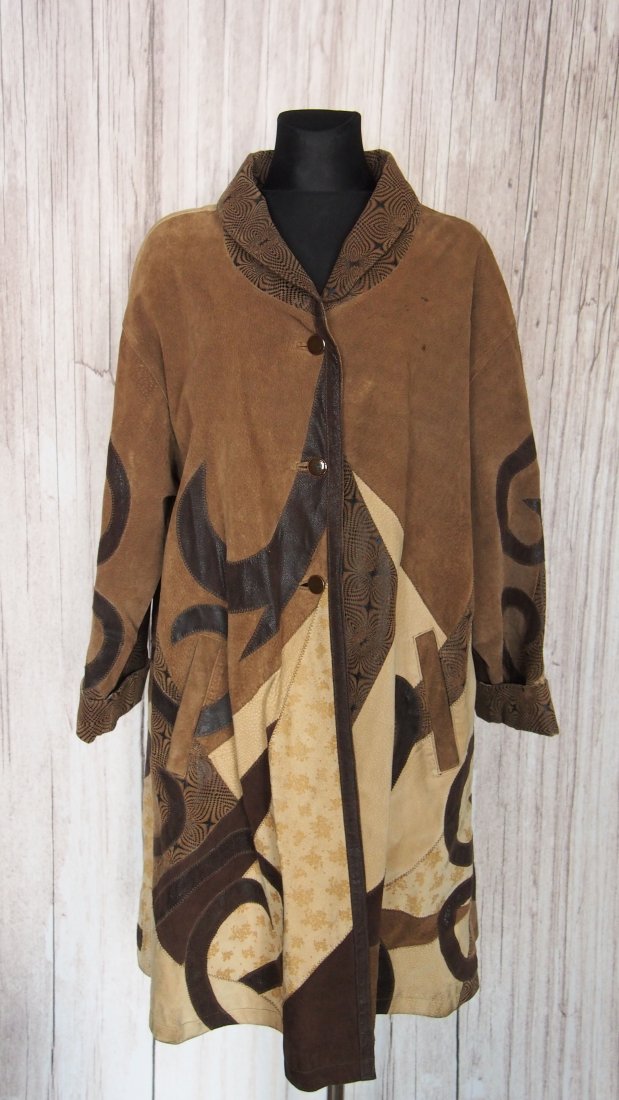 Przecudowny płaszcz oversizowy. Na podszewce. Wykonany ze skóry naturalnej techniką patchwork. Prawdziwe rękodzieło.