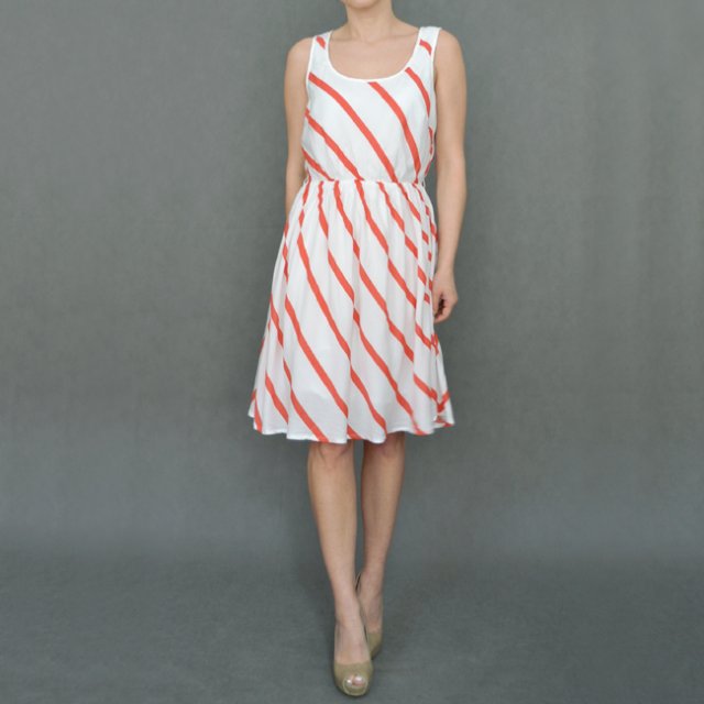 Śliczna, miluśka w dotyku sukienka marki CUBUS. W ukośne, czerwone paseczki. Z bardzo przewiewnej wiskozy. W talii gumka. Na podszewce.