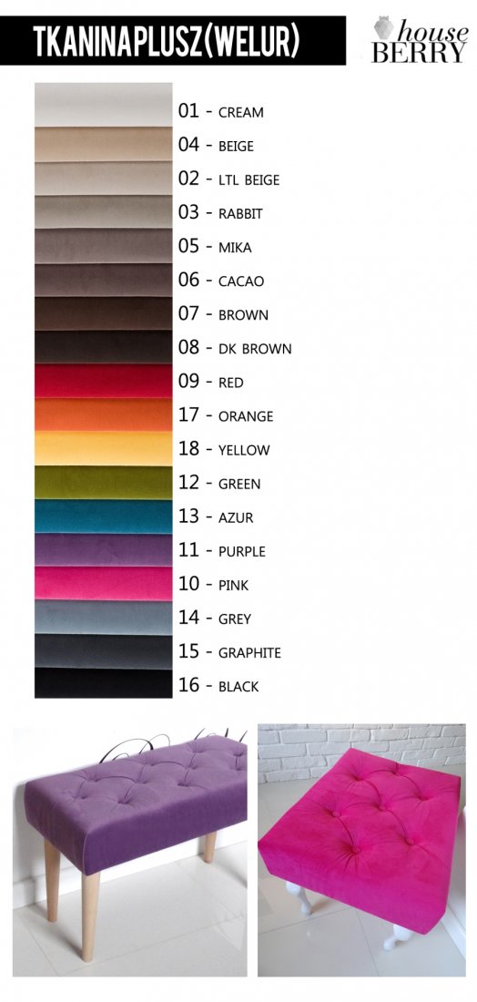 Możesz zmienić wymiar, kolor nóg albo ich kształt. Wybieraj dowolnie - Pamiętaj aby wybrany wymiar, kolor nóg ich kształt oraz wzór i kolor obicia wpisać w wiadomości do zamówienia.