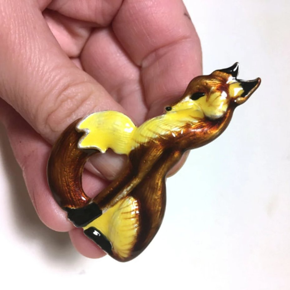 Wspaniała broszka z emaliowanym lisem - taka słodka!