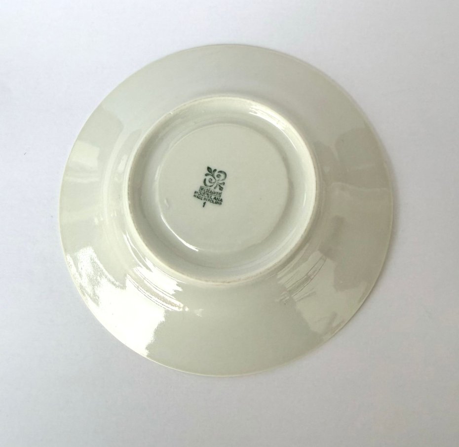 Śliczny zestaw (filiżanka ze spodkiem) wykonany z porcelany w Zakładach Porcelany we Włocławku. Jest to rzadszy wariant niż popularne wyroby fajansowe z tego miasta, co czyni go ciekawym kąskiem dla kolekcjonerów.