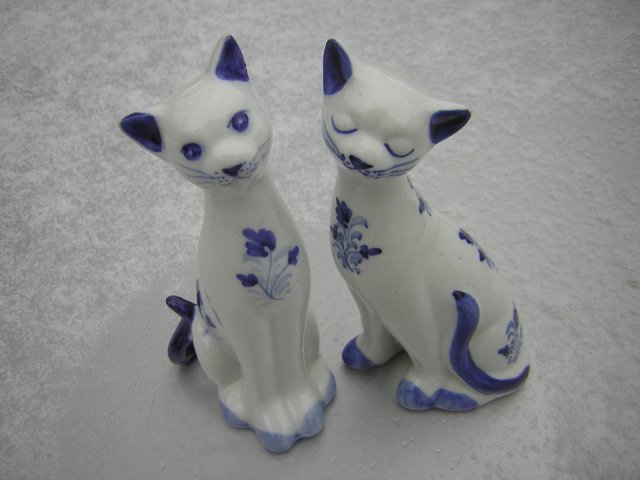 Duże porcelanowe figurki. Ręcznie malowane.Nie sygnowane, ale szlachetnie wykonane.Niuanse niebieskości i błyszczące szkliwienie. Puste w środku z dziurką od spodu. ŚLICZNE, SYMBOLICZNE. DO KOLEKCJI I NA PREZENT ;)