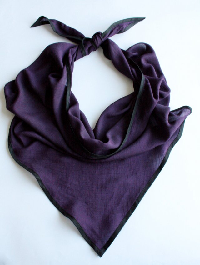 Trójkąna chusta w śliwkowym kolorze. Materiał oceniam na wiskozę.