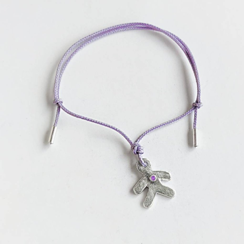 SŁODKI PAMPEREK bransoletka- zabawny dodatek. Ciekawy dodatek przykuwają uwagę i zaskakuje wzornictwem. Taka bransoletka sprawi, że każda stylizacja nabierze niepowtarzalnego, fantazyjnego charakteru. Bransoletka wykonana jest z: Srebro, ametyet, ozdobny sznurek. Srebro pr. 925sztuczne – zmatowione. Długość zawieszki 1,3 cm. Szeroko – 1,7 cm.