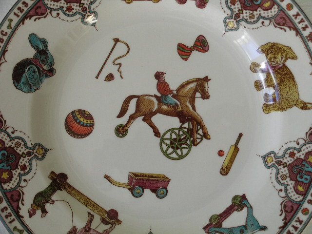 Porcelanowy talerzyk dziecięcy, sygnowany Spode, England. Edwardiańskie Dzieciństwo :) Tło ecru i bardzo angielskie zdobienie. Na błyszcząco szkliwiony. Pół-głęboki, pół-płaski. 19,5 x 2 cm. Stan zachowania bardzo dobry. Świetny na prezent.