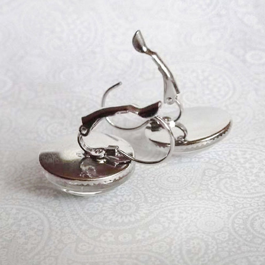 Kolczyki z oryginalną grafiką, zatopioną pod wypukłym szkiełkiem, dającym delikatny efekt trójwymiarowości i oprawioną w bazę w kolorze srebra. Grafika jest najwyższej jakości, wyraźna i nasycona. Bigle hipoalergiczne, zapinane, sztywno przymocowane do oczka, bez niklu i ołowiu. Oryginalne kaboszony- wykonane ręcznie według mojego projektu i przeze mnie, z dbałością o każdy detal.
