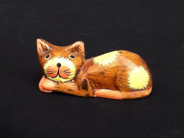 Drewniana figurka kocia, ręcznie malowana. Urocza obecność - świetny do kolekcji :) 9 x 3,5 x 4 cm. Stan zachowania dobry.